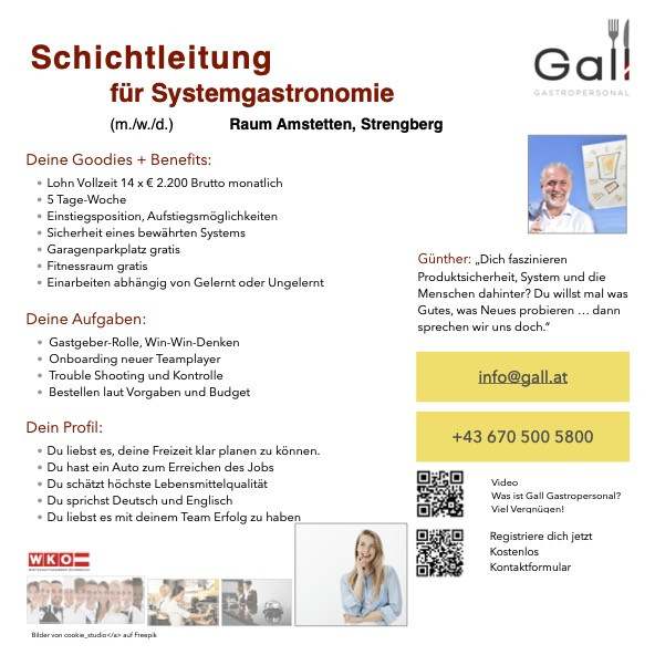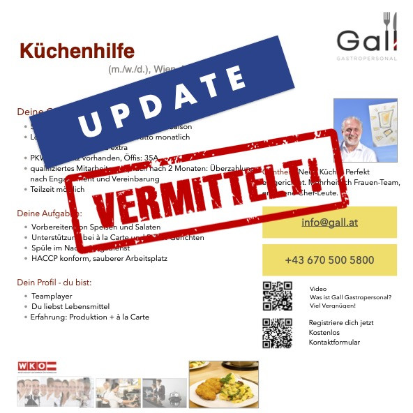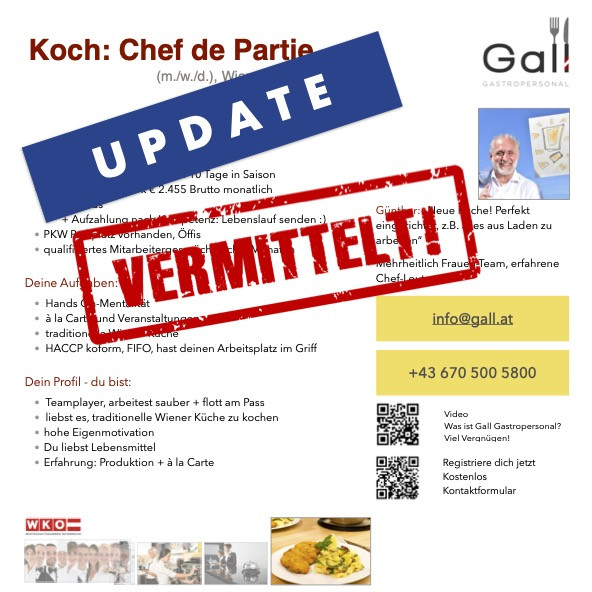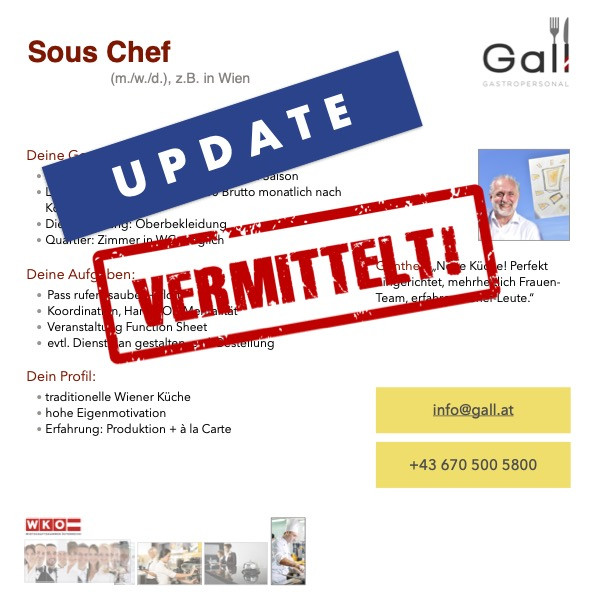 Kein passender Job dabei? Kein Problem! Unser einzigartiges Job-Netzwerk umfasst alles – vom urigen Heurigen bis zur Luxus 5 Sterne-Gastronomie und Hotellerie. Unsere Unternehmenspartner schätzen vor allem unsere Diskretion. Aus diesem Grund finden Sie in unseren Jobangeboten keine detaillierten Informationen zu Betriebsadressen. Wir möchten Sie kennenlernen und Ihnen nach einem ersten Gespräch passende Unternehmen vorschlagen. Zögern Sie nicht, nutzen Sie die Gelegenheit für eine Initiativbewerbung: