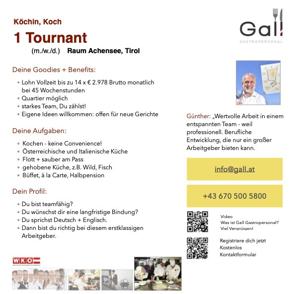 Unsere Jobbörse ist der erste Schritt in Richtung Ihrer neuen beruflichen Herausforderung in der Gastronomie, Hotellerie und im Tourismus. Hier finden Sie aktuell offene Stellen: